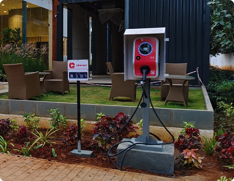 Install Charzer’s EV chargers at your workplace to charge electric vehicles seamlessly. We provide charging solutions for office buildings, tech parks, and co-working places